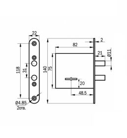 Замок врезной сувальдный САМ 76600 / ЗВ8-4С/13