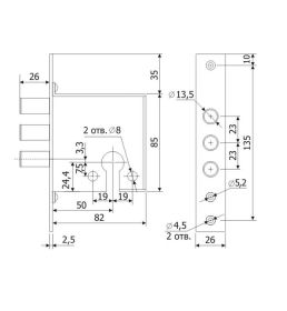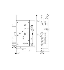 Замок врезной сувальдный ГАРДИАН 5015 длинный ключ предназначен для установки в металлические двери. Переворот защёлки выполняется без разборки замка. Бронепластина надежно защищает от высверливания. Повышенная защита от наиболее распространенных методов вскрытия: самоимпрессии — втулка на корпусе и крышке замка; отмычки — ложные пазы на стойке и сувальдах, увеличенная жесткость пружин сувальд; «свертыша» — ослабленный зуб рейки хвостовика; взлома — при полностью выдвинутых ригелях замка 30% их длины остается в корпусе замка, усилена конструкция засовов; высверливания — внешняя бронепластина, закаленная стойка рейки хвостовика.